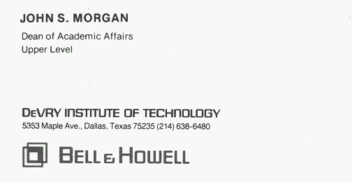 Over the 28 years of my tenure at DeVry I wore many hats: Assistant Professor, Professor, Senior Professor, Department Chairman, Dean of Academic Affairs - Lower Level, Dean of Academic Affairs - Technician Program, Dean of Academic Affairs - Upper Level