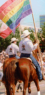 Most of the loudest cheers were saved for P.F.L.A.G. [Parents and Friends of Lesbians and Gays]. Many chapters were there including those of Dallas and Fort Worth. Unfortunately, we were unable to get a good photo.